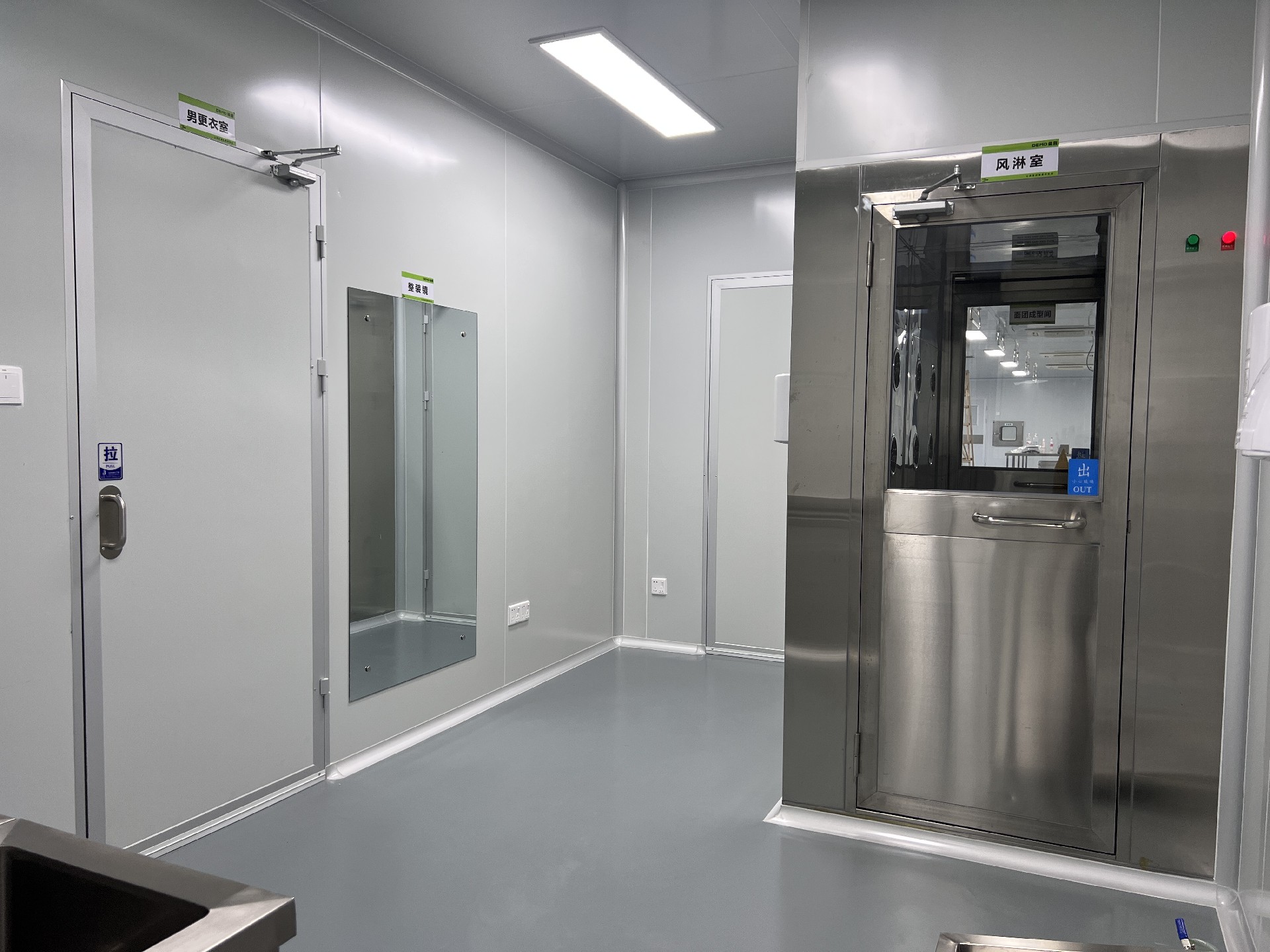 在空氣凈化系統(tǒng)方面,無(wú)塵車間的核心在于強(qiáng)大的空氣凈化能力,主要由初效過(guò)濾段、中效過(guò)濾段、高效過(guò)濾段(HEPA)、活性炭吸附段、紫外線殺菌燈、恒溫恒濕控制系統(tǒng)等組成。初效過(guò)濾段用于攔截空氣中較大顆粒的塵埃,中效過(guò)濾段進(jìn)一步去除中等大小的顆粒物,高效過(guò)濾段能有效去除 0.3 微米以上的微粒,活性炭吸附段用于去除空氣中的有機(jī)物和異味,紫外線殺菌燈利用紫外線照射殺死空氣中的細(xì)菌和病毒,恒溫恒濕控制系統(tǒng)通常將溫度控制在 20 - 25°C,相對(duì)濕度控制在 45% - 65%。